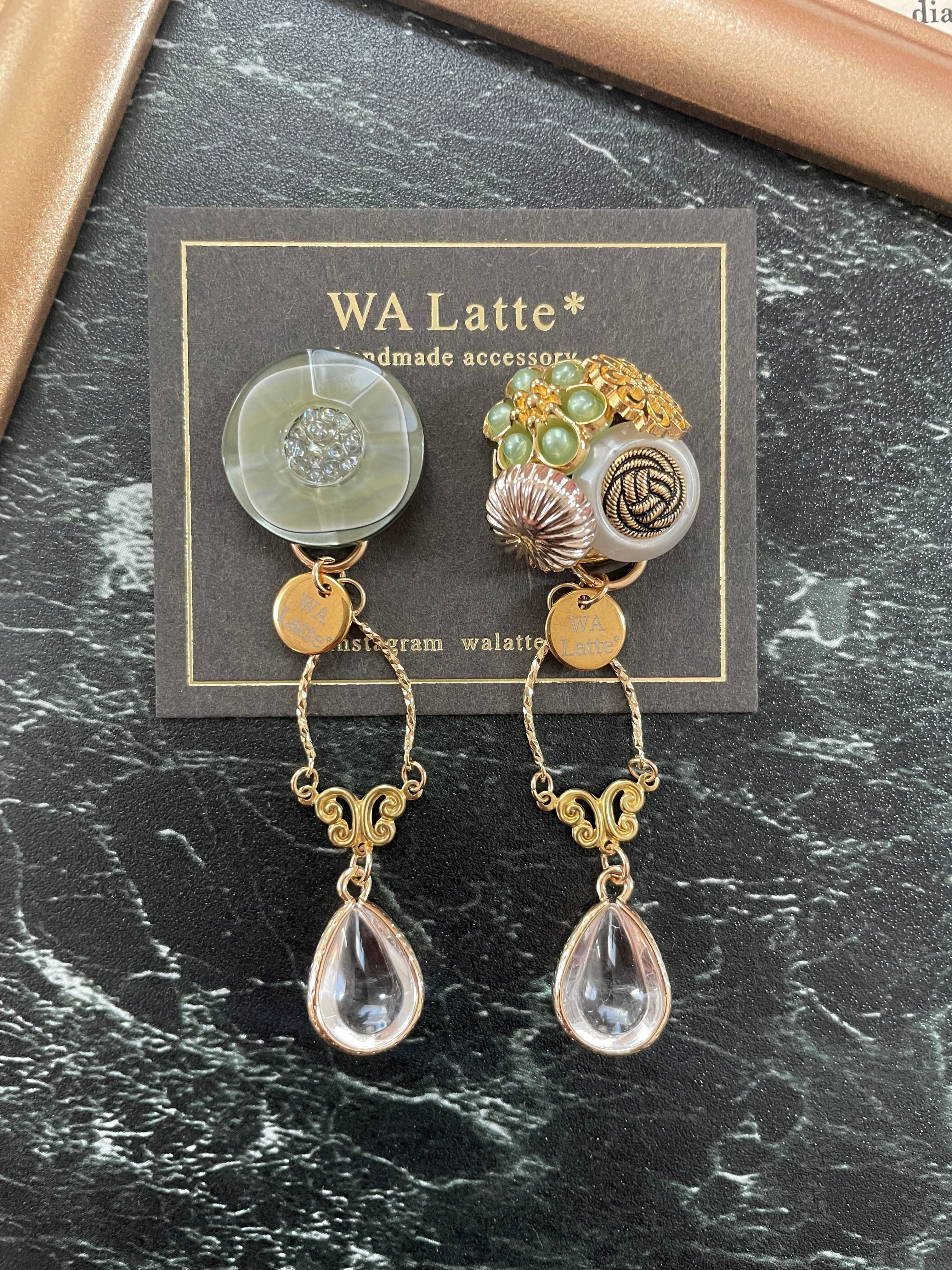 ◉ピアスorイヤリング◉ヴィンテージボタン×チャーム